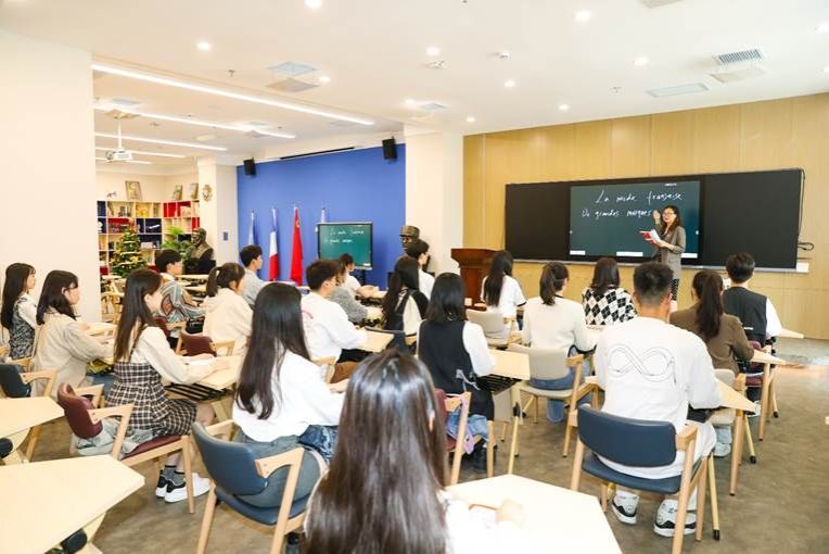 The Center covering an area of 5200 square meters wass constructed and put in use in April, 2019. lt is a keproject with special funds, a total amount of about 50 rmillion yuan, provided by the Private Higher Education irshaanxi Province,The center consists of 16 labs for foreexperiencina,capable otdealing with English, German, French, Spanish, Russian, lapanese and Korean languages and their cultures, aloncwith a virtual simulation lah, a simultaneous internreting lah, a multifunctional hall and so on The center undertaketeachina tasks for more than ten language maiors on camnus with a total of over fiFtv dedree courses offerecMulti-national cultures permeate the entire center, projecting the situational teaching and highlighting uniqueforeign language features. it is a multi-functional pilot pedagogical base that integrates foreign language teachingcultural experiencing and cross-cultural exchanges.